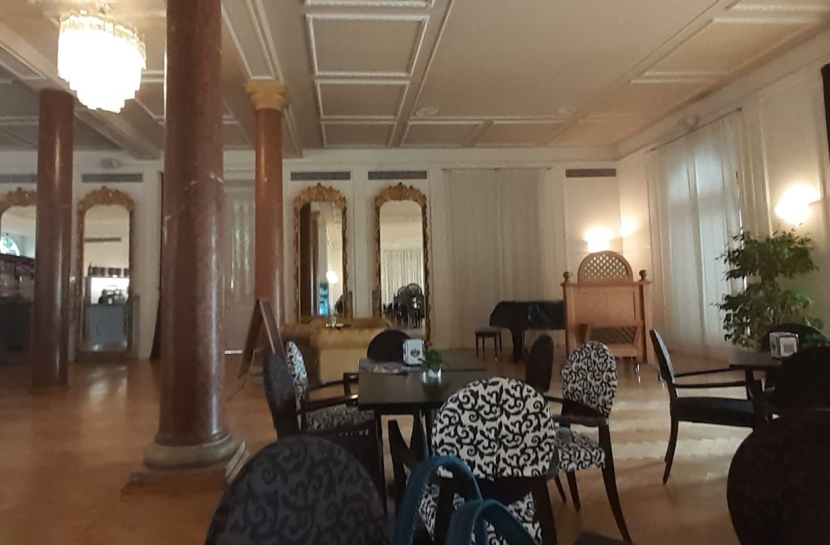 Step inside and be greeted by an ambiance steeped in nostalgia; upon entering, you’re welcomed by the sophisticated notes of a grand piano and the inviting sight of a luxurious beige Chesterfield sofa. The interior strikes a perfect balance between chic and comfortable, allowing patrons to enjoy their meals whether they choose to settle indoors or soak up the sun on the spacious outdoor terrace.